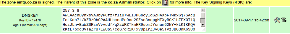 Getting more serious, once a Domain (or rather the Zone file) has been DNSSEC Signed, everything inside it is secure. Not only does this mean that lookups are now secured (Looking up "dnssec.co.za" can not be spoofed) but other interesting records like TLSA can be added. Why mention TLSA, its the fingerprint of a Web (or Mail) certificate. It allows software to check that its got to the right Web (or mail) server – which increases security and user trust in the Internet. This is a “good thing”TM to do. ISP’s in Germany use the TLSA for e-mail server certificates to promote that they are better ISP’s than their competition – because it makes traffic flowing to their mail server just a bit more secure.